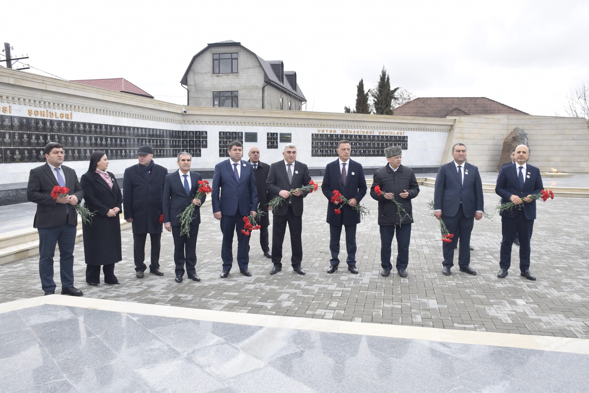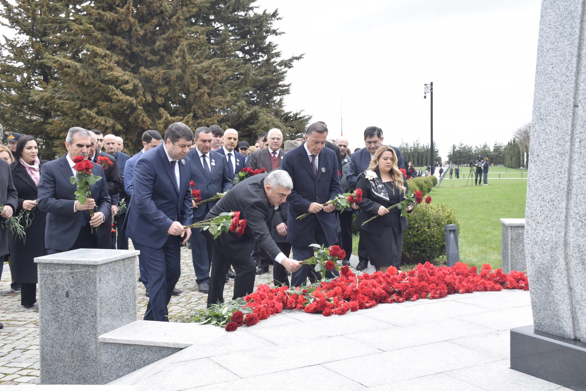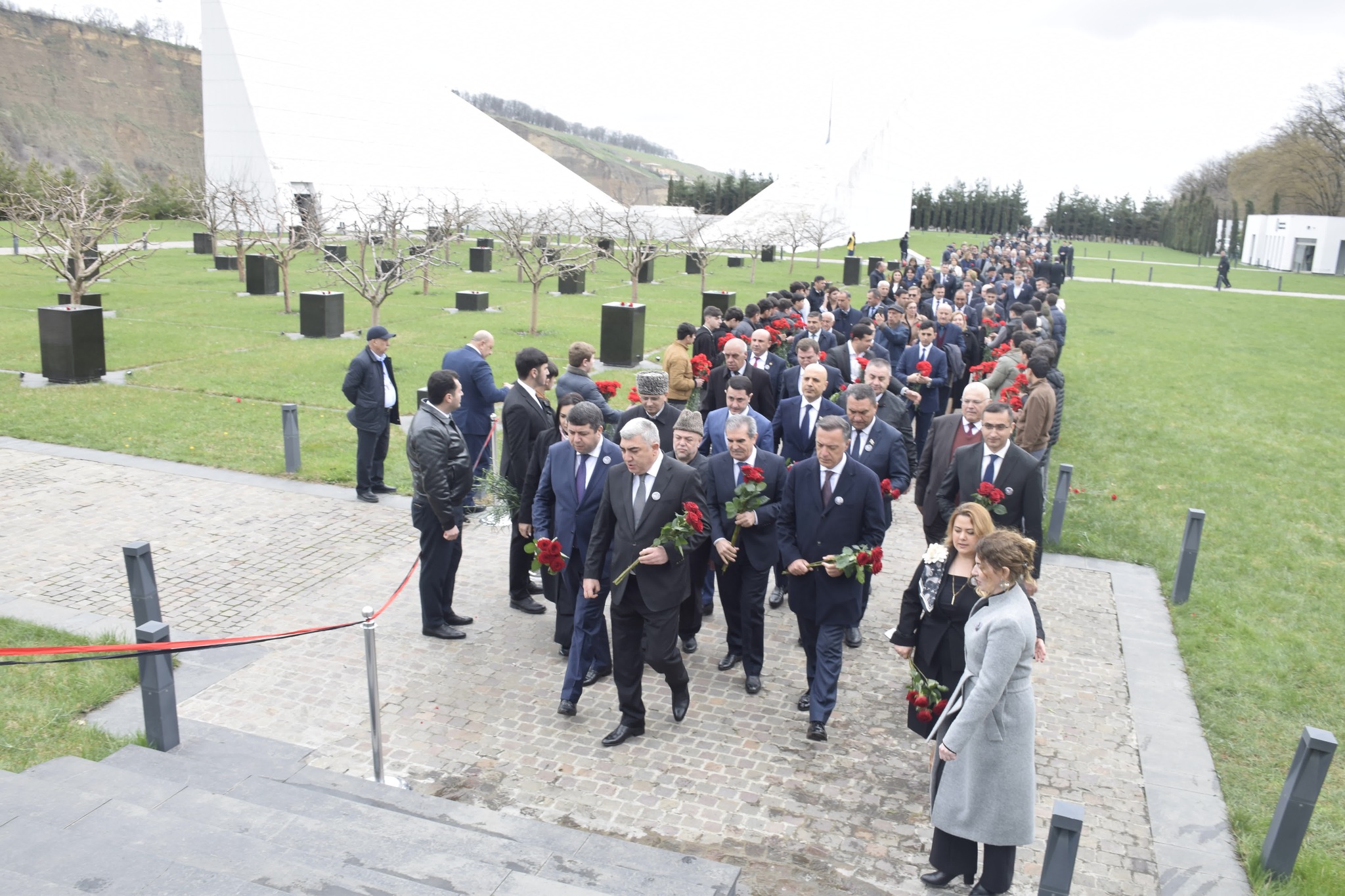 Ziyarət zamanı abidə önünə gül dəstələri düzülmüş, soyqırımı qurbanlarının əziz xatirəsi dərin ehtiramla yad edilmişdir.